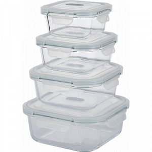 64-224 Набор 4пр. контейнеров квадратных, стекло (0,3л;0,5л;0,8л;1,2л) Linea Desco