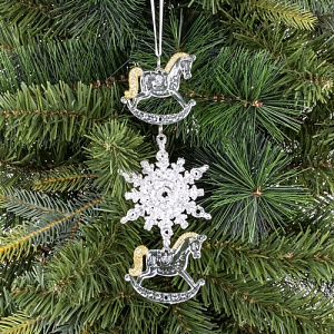 Украшение новогоднеe подвеска"Снежинка с лошадками", L6,5 W0,5 H18 см
