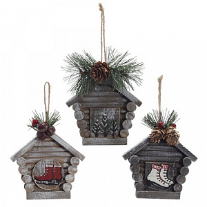 Изделие декоративное подвесное"Домик", L11 W6 H15 см, 3в.