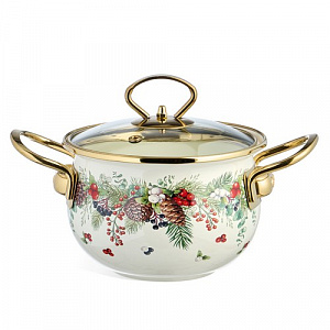 КАСТРЮЛЯ ЭМАЛИРОВАННАЯ AGNESS СО СТЕКЛЯННОЙ КРЫШКОЙ СЕРИЯ "CELEBRATION", 1.5 Л, 16*10 СМ