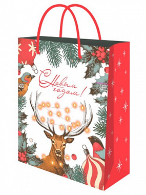 Пакет подарочный из крафт 18х23х30 см (craft М) Новогодний олень, 130 г(собс.разр.) ППК-2326