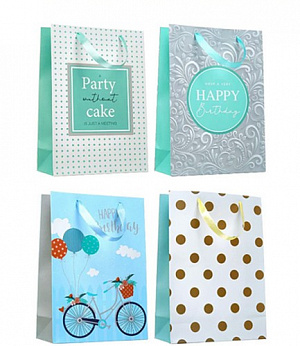 Подарочные пакеты "Праздничный" в ассортименте, 22x31x10 см, 4 вида, 12 шт. / упак. (ш/к 1896)