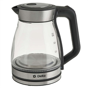 Чайник DELTA DL-1124 корпус из жаропр. стекла, 1500Вт, 1,8л, черный (12)