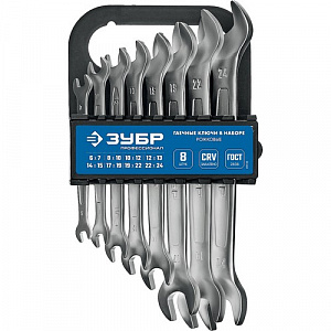 8 шт, 6 - 24 мм, набор рожковых гаечных ключей, Профессионал (27011-H8)