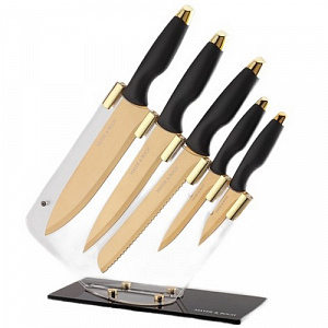 40607 Набор кухонных ножей нерж/ст/полипропилен + подставка пластик 6пр MB золотой, черный