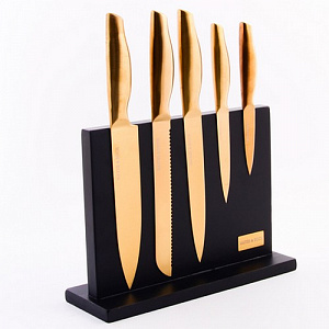 40609 Набор кухонных ножей нерж/ст + подставка дерево 6пр MB золотой, черный