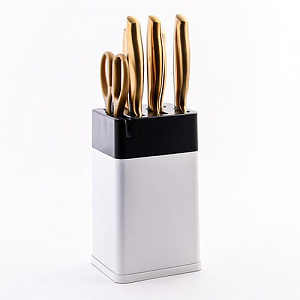 40610 Набор кухонных ножей нерж/ст + подставка пластик 6пр MB белый, золотой, черный