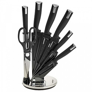 WEBBER BE-2272N Набор ножей на акриловой подставке 8 пр. (нерж.сталь+антибактер.покрытие) (6)
