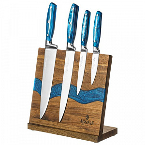 НАБОР НОЖЕЙ AGNESS НА ДЕРЕВЯННОЙ ПОДСТАВКЕ С МАГНИТНЫМ ДЕРЖАТЕЛЕМ, 5 ПРЕДМЕТОВ,
