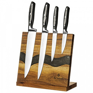 НАБОР НОЖЕЙ AGNESS НА ДЕРЕВЯННОЙ ПОДСТАВКЕ С МАГНИТНЫМ ДЕРЖАТЕЛЕМ, 5 ПРЕДМЕТОВ