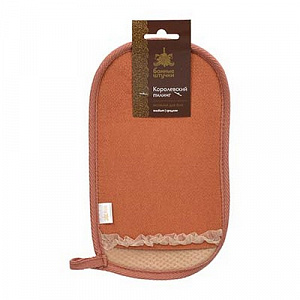 Мочалка «Королевский пилинг», рукавица с декором-тесьма, 14,5х25 см, цвет терракотовый, "Банные штучки"/ 108 / 18