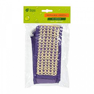 Мочалка из сизаля с сегментами хлопка "Лента", с веревочными ручками,8х70см (8х80см с ручками), цвет фиолетовый, "Банные штучки"/20