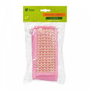 Мочалка из сизаля с сегментами хлопка "Лента", с веревочными ручками,8х70см (8х80см с ручками), цвет розовый, "Банные штучки" /20