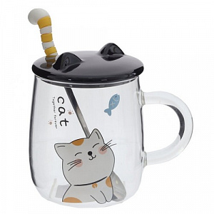 Кружка с крышкой и ложкой, 400 мл, L12 W8,5 H13 см