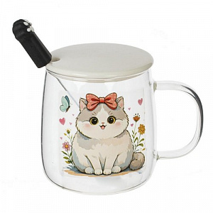 Кружка с крышкой и ложкой, 430 мл, L12 W9 H12,5 см