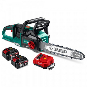 ЗУБР пила цепная аккумуляторная 40 В, (2x20В), 400 мм шина, 2 АКБ LMS (4 Ач) (ПЦБ-4040-42)