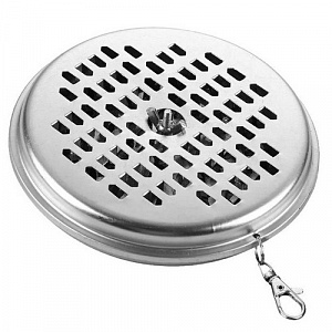 Подставка для спирали от комаров с карабином "Перфорация". Размер: диаметр 14,5 см, высота 2,5 см.
