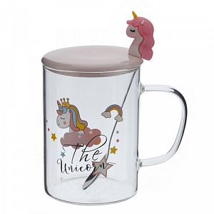 Кружка с крышкой и ложкой 450 мл, L8 W8 H11 см
