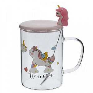 Кружка с крышкой и ложкой 450 мл, L8 W8 H11 см