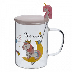 Кружка с крышкой и ложкой 450 мл, L8 W8 H11 см