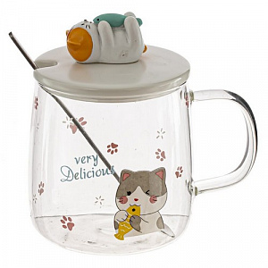 Кружка с крышкой и ложкой 420 мл, L8 W8 H9 см