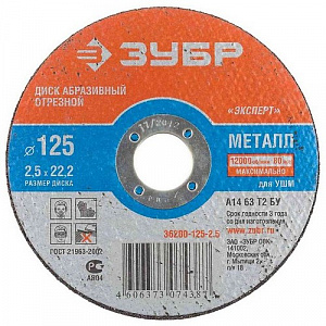 Круг отрезной абразивный ЗУБР по металлу, для УШМ, 150х1,2х22,2мм