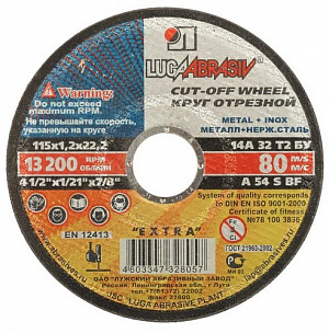 Круг отрезной абразивный по металлу "Луга", 125х1,2х22,2мм