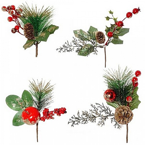 Новогоднее украшение Ветка, H 19 см, 4в. (без инд.упаковки)