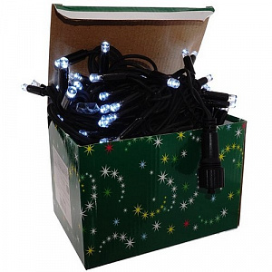 Электрогирлянда уличная БЕЗ СИЛОВОГО КАБЕЛЯ, L 8,5 м, 100 белых LED ламп, постоянный, 5W, шнур черн.