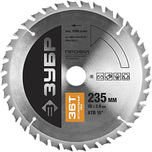 Диск пильный ЗУБР "ПРОФИ" "Оптимальный рез" по дереву, 36Т, 235х30мм