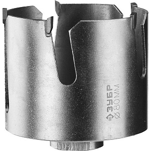 Коронка ЗУБР "ПРОФИ" "ПРОУНИВЕРСАЛ", твердосплав резцы, бетон, кирпич, керам, цв мет, гипсокарт, пласт, дерево, d=80мм