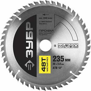 Диск пильный ЗУБР "ПРОФИ" "Чистый рез" по дереву, 48Т, 235х30мм