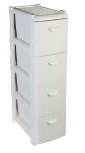Комод узкий РОТАНГ (4 секции) (белый ротанг)