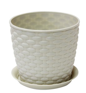 Кашпо РОТАНГ D135мм 1л с поддоном (белый ротанг)