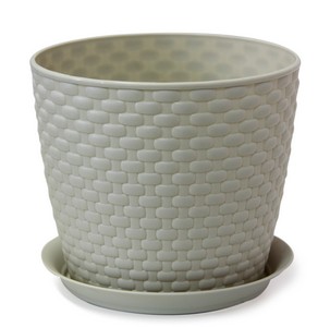 Кашпо РОТАНГ D180мм 3л с поддоном (белый ротанг)