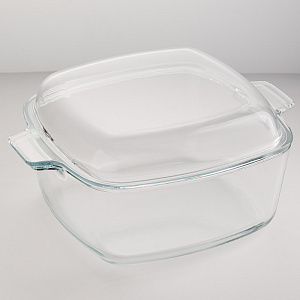 Квадратная кастрюля с крышкой из термостойкого стекла 2,7 л "ЗАБАВА" 26.1*21.6*12.5
