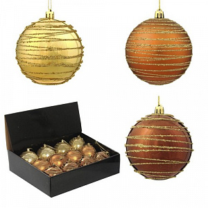 Украшение новогоднее Шар "Спираль золотистая", набор из 12 шт, L35 W27 H8 D8 см. Полимерный материал