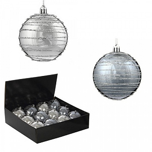 Украшение новогоднее Шар "Спираль серебристая", набор из 12 шт, D10 см. Полимерный материал